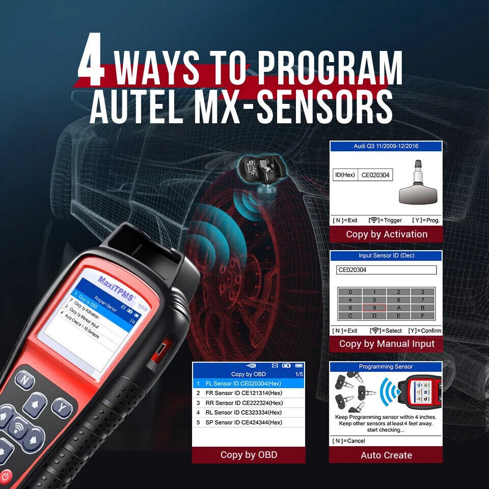 AUTEL MAXITPMS TS508WF kan alleen Autel MX-sensoren programmeren. Het voordeel is dat de Autel sensoren een stuk goedkoper zijn dan bepaalde tpms sensoren die soms per stuk tot wel 200 euro kunnen kosten.