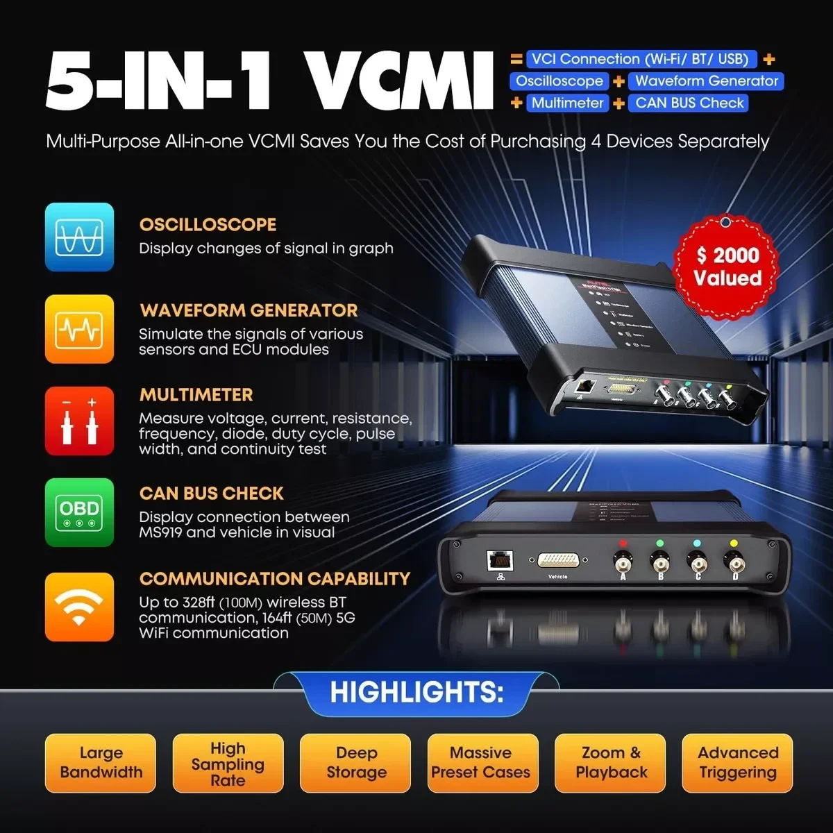 De VCMI van de Autel MS919EV is geïntegreerd met VCI-functies + Oscilloscope + Waveform Generator+ Multimeter+ CAN BUS CHECK.