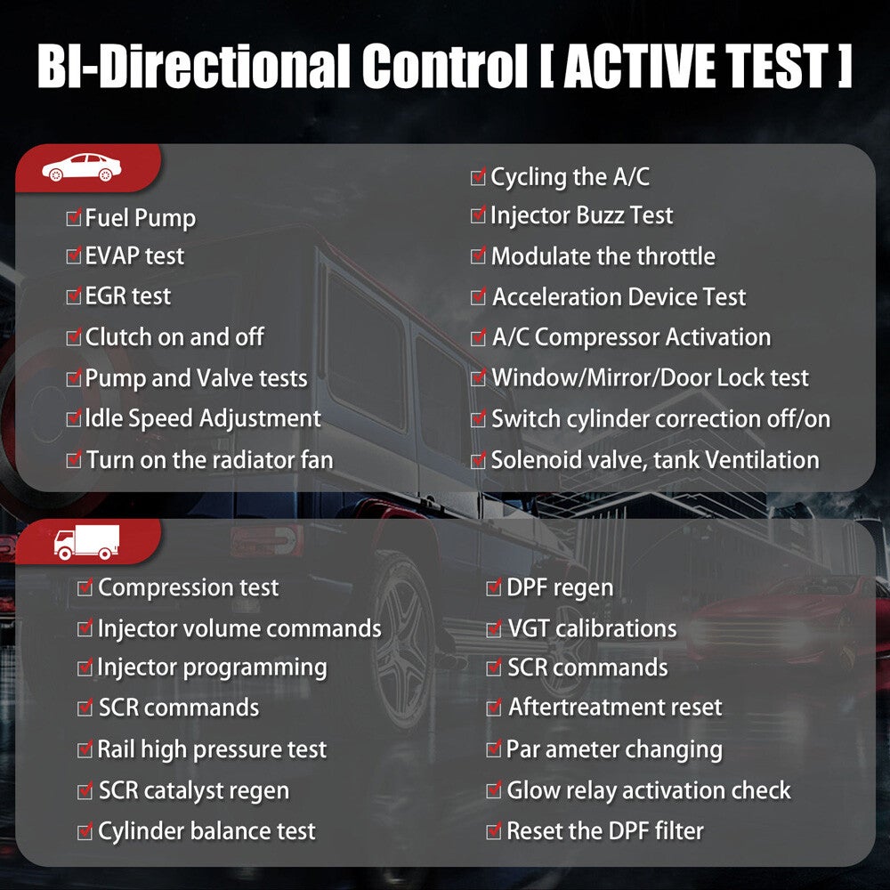 Ondersteuning van alle communicatieprotocollen zoals: CAN/CANFD/DOIP en communicatiestandaarden voor auto's J2534/D-PDU /RP1210. Ondersteunt alle 5 de OBD2 / EOBD protocollen en alle 10 test modus. Ondersteunt motormanagement bij alle OBD2 / EOBD voertuigen vanaf 1996 t/m heden (ook CAN)